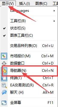 第一步:在显示栏目下面选择导航器进入。